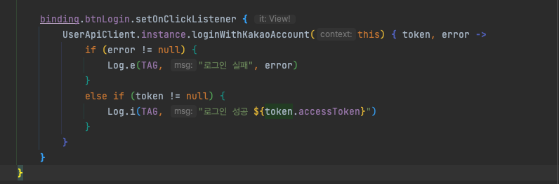 이제 다시 MainActivity로 돌아와서 카카오 로그인 코드를 구현 해보도록 하겠습니다.