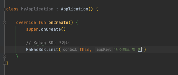 설정 후 카카오 로그인SDK 를 초기화 시키기 위해 Appilication을 상속하는 클래스를 만들어 줍니다.